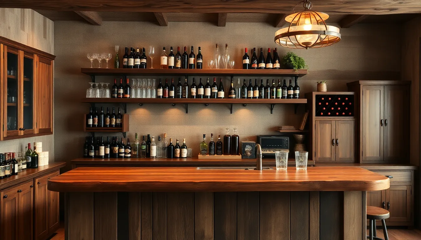 Creating a rustic home bar involves incorporating vital elements that enhance both design and functionality.